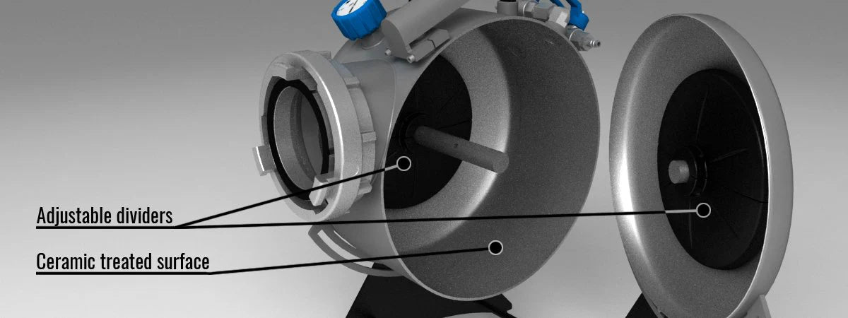 The ID200 is our smallest inversion drum. It can be directed to position the nozzle at a fitting angle for the shoot.